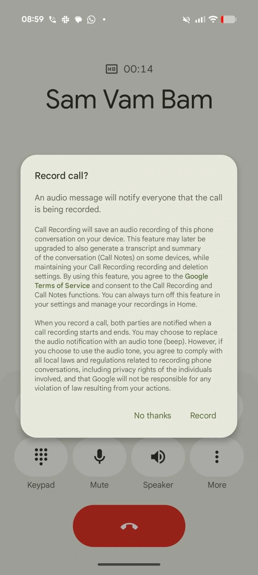 Также стоит заметить, что правила записи разговоров зависят от страны. В некоторых регионах требуется согласие второго участника звонка. Чтобы избежать нарушений, приложение автоматически воспроизводит голосовое сообщение или сигнал, который предупреждает о начале записи.