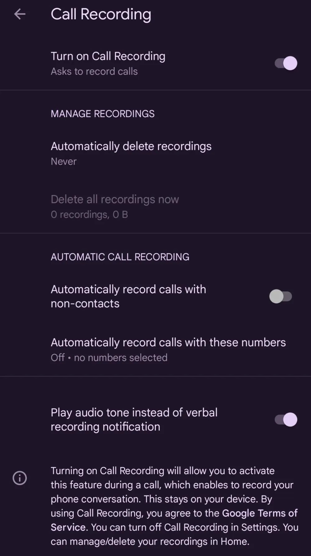 Условия различаются в зависимости от модели. На Pixel 6 и более новых версиях требуется ОС Android 14 или новее. Другие Android-смартфоны из Phone by Google поддерживают запись, начиная с версии Android 9.