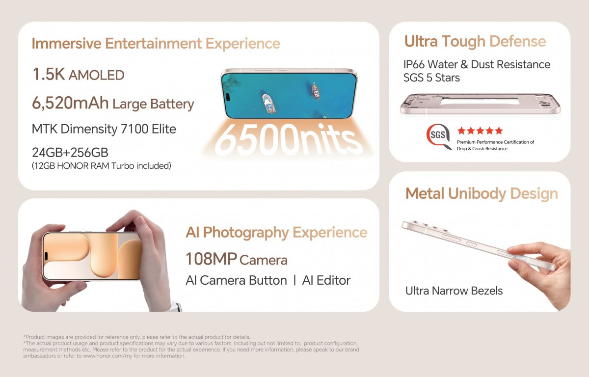 Новинка содержит чипсет MediaTek Dimensity 7100 Elite. Его дополняют 12 ГБ оперативной памяти и накопитель емкостью 256 ГБ. Устройство комплектуется батареей емкостью 6520 мА-ч. Она поддерживает быструю проводную зарядку мощностью 45 Вт. Корпус сочетает алюминиевую рамку и стеклянную заднюю панель. Смартфон имеет защиту от пыли и воды по стандарту IP66. Устройство работает под управлением оболочки MagicOS 10 на базе Android 16.