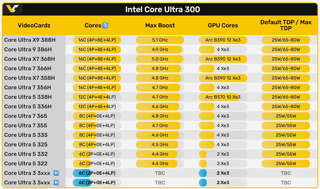 Позже Intel уточнила в комментарии Hardwareluxx, что Wildcat Lake не используется в моделях Core Ultra 5 332 и Core Ultra 5 322. Эти процессоры, несмотря на меньшее количество ядер, все же базируются на наименьшем варианте упаковки Panther Lake.