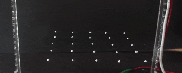 Гриер и его коллеги — физики NYU Миа Моррелл и Лила Эллиотт — почти случайно открыли свою классическую систему, исследуя другой класс физических взаимодействий. Крошечные шарики из полистирола, диаметром всего миллиметр-два, являются прекрасными инструментами для изучения того, как объекты косвенно взаимодействуют через звуковые волны. Они очень легкие, поэтому их можно левитировать с помощью звука, но в то же время имеют достаточную структурную прочность, чтобы оставаться жесткими под действием акустических сил. Также они имеют незначительные различия в размере и форме, что является ключевым для изучения нереципрокных взаимодействий. Ученые проводили эксперименты в рамках своих текущих исследований этих взаимодействий. Сначала небольшой массив динамиков настроили на создание стоячей звуковой волны — идеально сбалансированной по структуре, без навязанного ритма. Затем в систему ввели шарики, создавшие крошечное возмущение, от которого отражались звуковые волны.