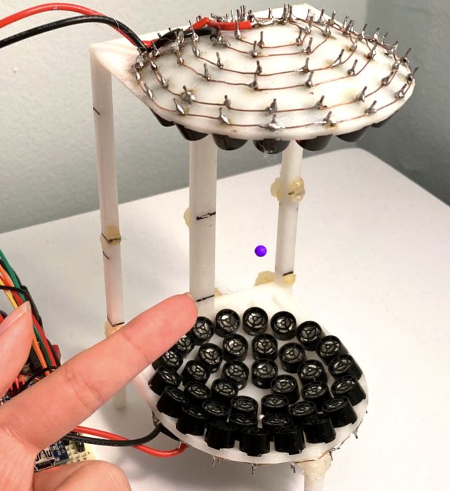«Звуковые волны оказывают силы на частицы — так же, как волны на поверхности пруда могут оказывать силу на плавающий листок. Мы можем левитировать объекты против силы тяжести, погружая их в звуковое поле, которое называется стоячей волной», — говорит Моррелл.