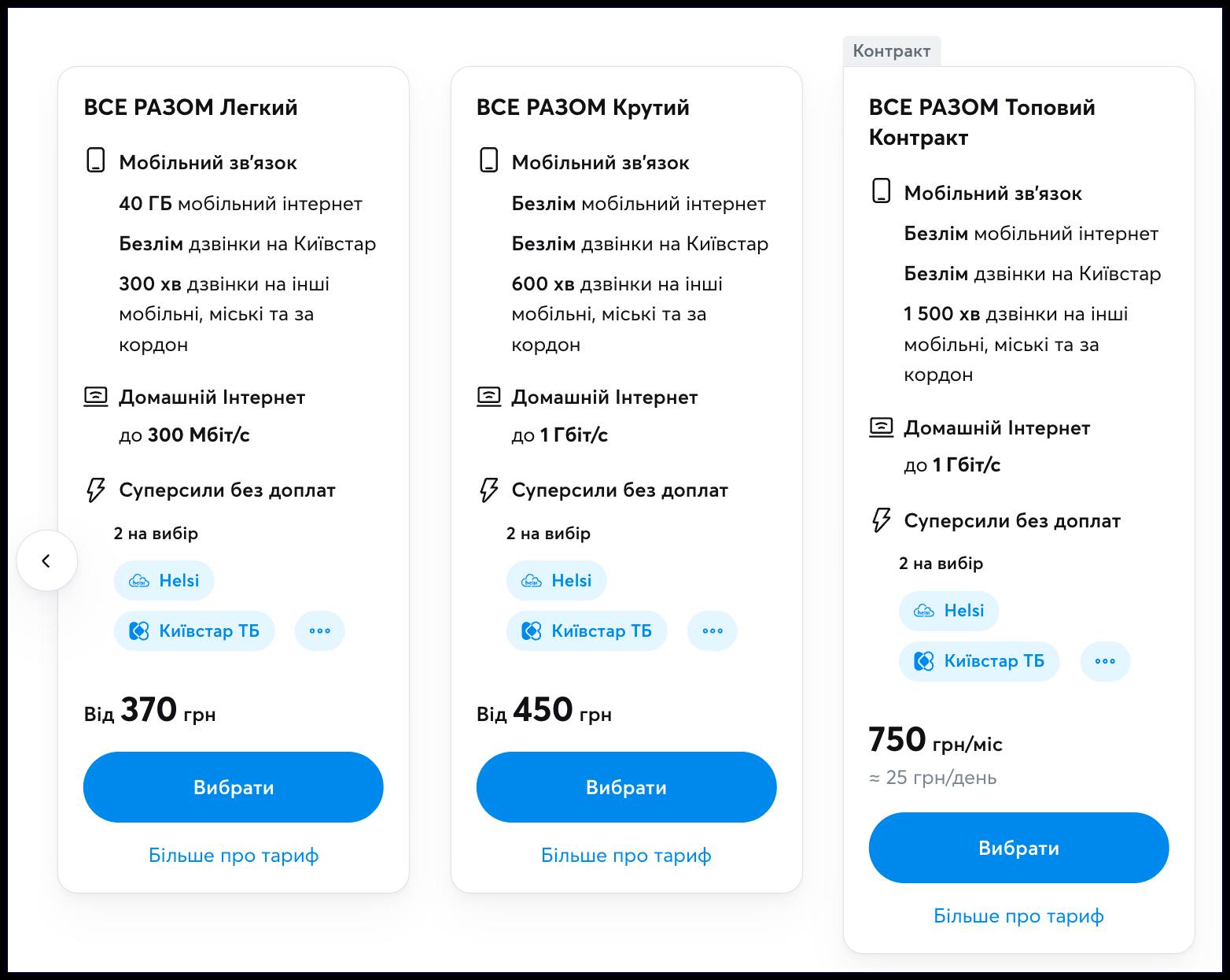С 22 января «Киевстар» предлагает новую линейку тарифов мобильной связи для подключения и перехода: она включает только пакеты «Все вместе», а минимальная стоимость предложений составляет ₴370.