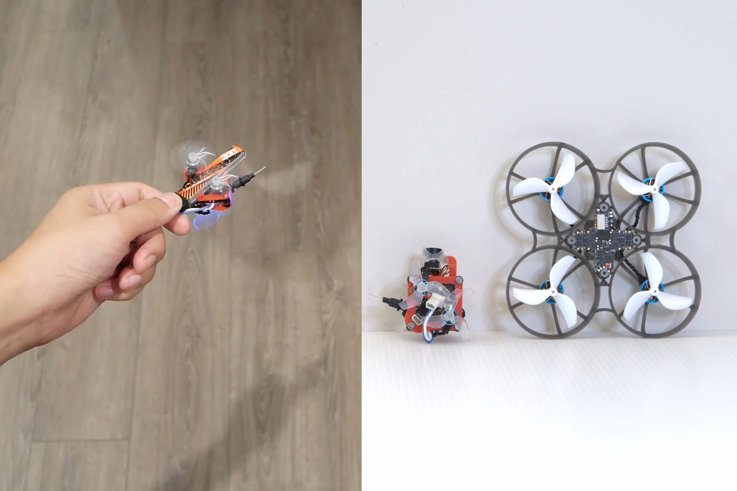 В конечном итоге блогер ожидал получить полноценный FPV-дрон, который бы помещался на ладони. Он использовал идею одной старой необычной конструкции, известной как «костяной дрон», когда два пропеллера перекрывают друг друга на каждом конце. Это придает конструкции узкую форму, подобную кости, которая экономит пространство и при этом сохраняет баланс тяги.