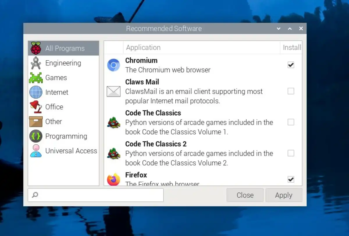 Raspberry Pi не имеет кнопки питания, поэтому компьютер запускается сразу после подключения кабеля питания. После первого старта система проверяет обновления и открывает рабочий стол. В базовой конфигурации уже установлены браузеры Firefox и Chromium, а дополнительное программное обеспечение можно установить через менеджер рекомендованных программ. Следовательно, ПК можно использовать для базовых задач, таких как работа в интернете, текстами, воспроизведение медиа.