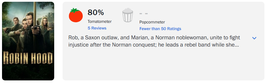 В то же время рейтинг шоу MGM на данный момент существенно преобладает две последние экранизации: работа Ридли Скотта с Расселом Кроу в главной роли получила лишь 43%, тогда как фильм 2018 года с Тэрроном Эджертоном остановился на провальных 14%.