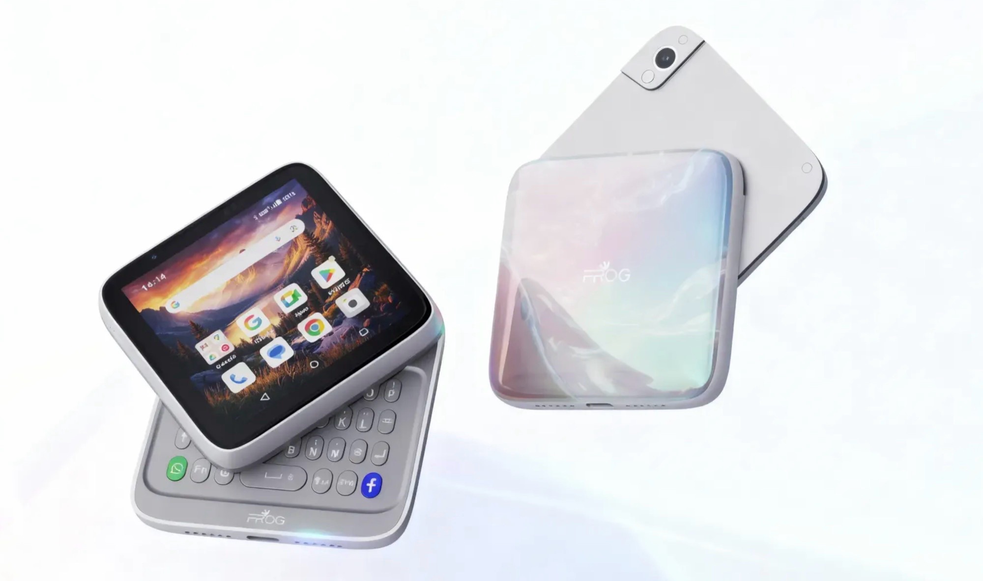 Компактный Android-смартфон Frog RS1 под квадратным 3,4″ дисплеем скрывает либо клавиатуру, либо геймпад.
