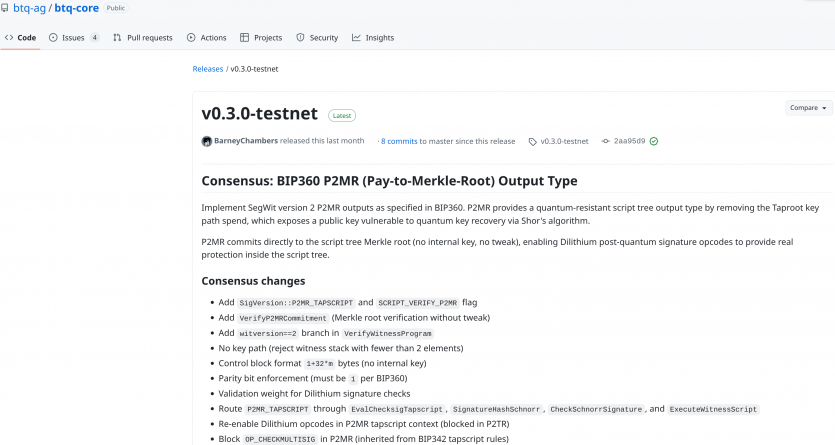Компания BTQ Technologies объявила о запуске Bitcoin Quantum testnet v0.3.0 — первую в истории рабочую реализацию стандарта BIP 360, которая не гипотетически, а на практике обеспечивает квантово-устойчивые транзакции в биткоин-сети.