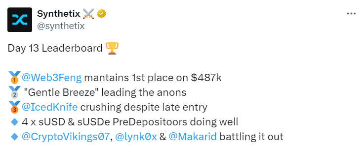 В соревновании участвуют 100 трейдеров — от известных аналитиков, руководителей фондов и венчурных инвесторов до представителей сообществ Synthetix и Kwenta, криптоблогеров и лидеров мнений. Половина мест распределена по приглашениям среди известных игроков рынка, остальные — через предварительные депозиты sUSD и sUSDe или лотереи среди пользователей Synthetix Vaults. Соревнование проходит на платформе с бессрочными фьючерсами (perpetual futures).