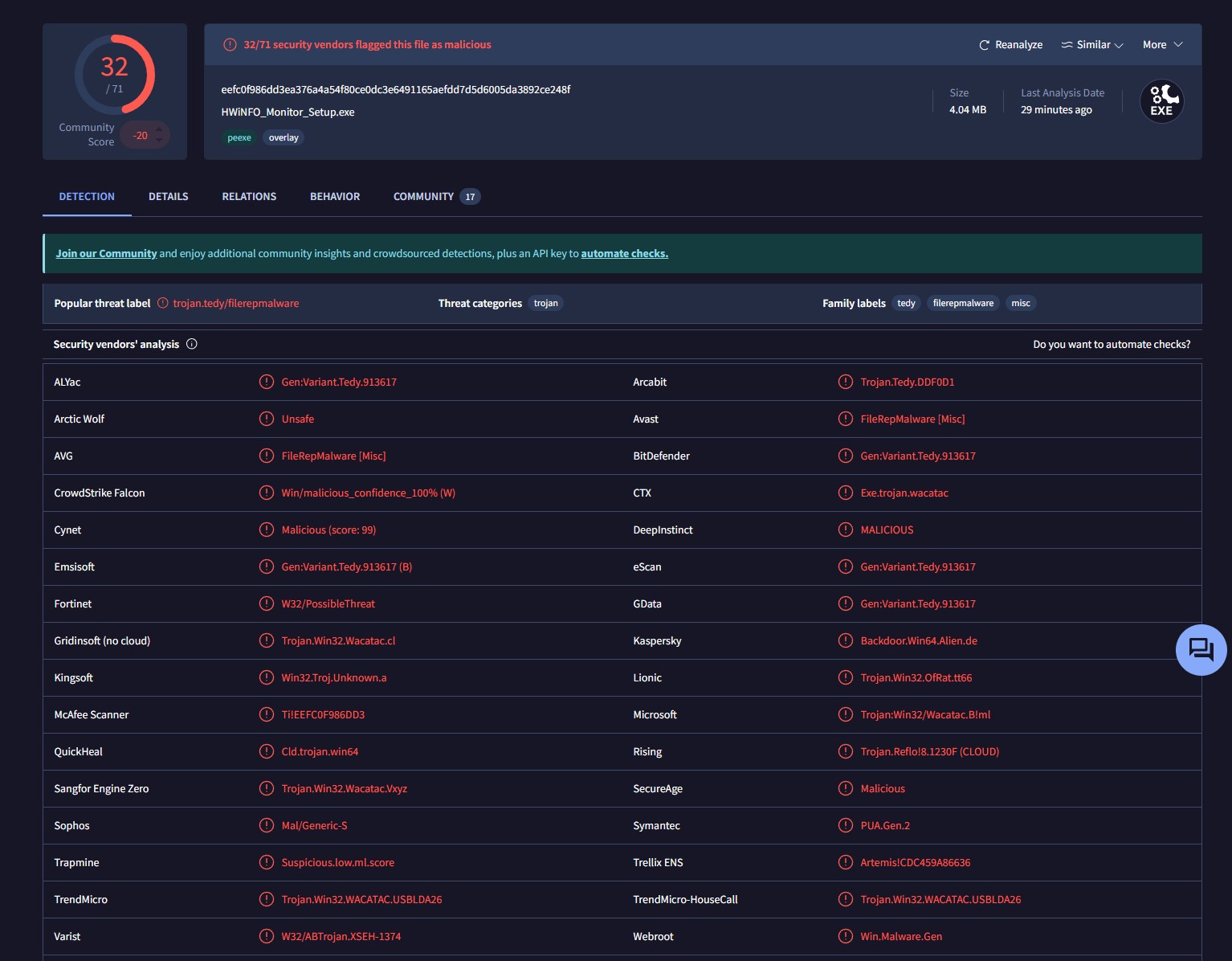 Несколько других пользователей сообщили о получении подозрительных файлов, названия которых не совпадали, а антивирусы предупреждали об опасности. Все указывает на то, что популярные приложения для мониторинга были взломаны.