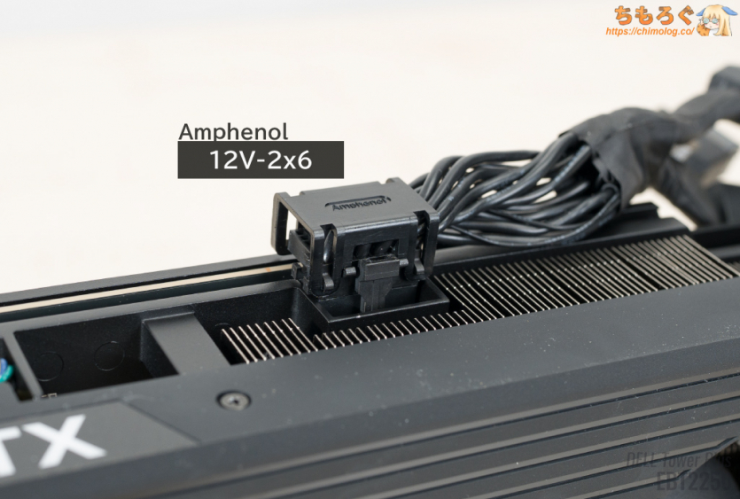 Dell использовала оригинальные металлические фитинги Amphenol — одного из крупнейших производителей интерконнект-решений в мире. Благодаря этому разъем 12V-2×6 остается полностью неподвижным и не может случайно ослабиться. При этом подключаемый к разъему кабель не является «родным» 16-pin: это адаптер, который на другом конце имеет два стандартных 8-контактных PCIe-коннектора.