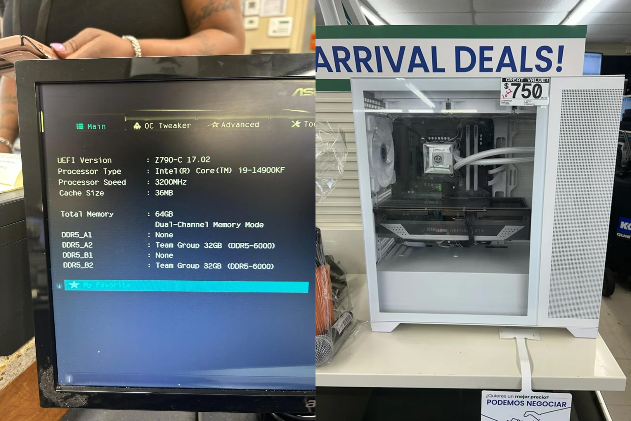 В это трудно поверить, но пользователь uneektnt предоставил фото компьютера с ценником в Reddit. На нем указано $750, что тоже очень неплохо, но автор сообщения сообщает, что на ПК была скидка.Это не какая-то заброшенная система: можно увидеть прозрачный белый корпус с вентиляторами и отделением блока питания, систему жидкостного охлаждения на процессоре и видеокарту производства Zotac.