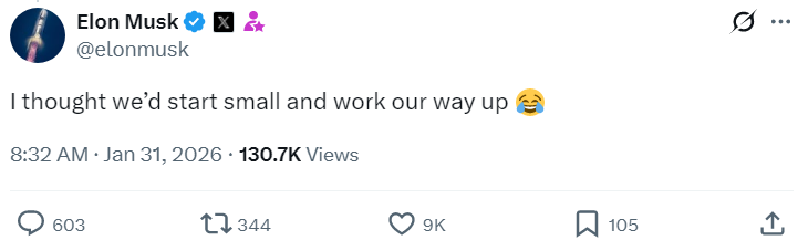 Маск отреагировал на сообщения о представлении и заявил в Х, что они начнут с малого и постепенно будут наращивать масштабы. До этого он публично и неоднократно говорил о необходимость орбитальных дата-центров и амбиции своих компаний стать пионерами этой технологии. Последний раз — на Всемирном экономическом форуме в Давосе, Швейцария.