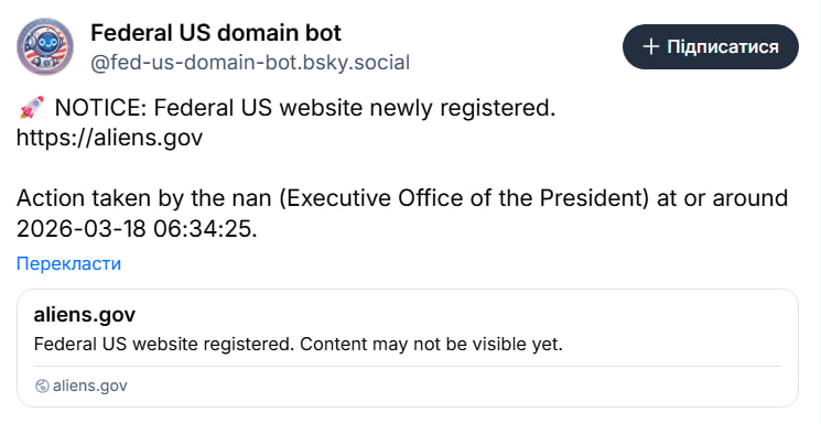 В среду исполнительный офис президента США Дональда Трампа зарегистрировал домен aliens.gov: соответствующего сайта еще не существует, но такой шаг логично следует предыдущим анонсам по «рассекречиванию» файлов, связанных с НЛО.