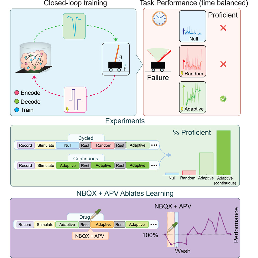 Несколько лабораторных образцов ткани головного мозга мыши убедительно доказали, что нейронные цепи можно направлять для решения классических задач управления путем тщательно структурированной обратной связи. В замкнутой среде, обеспечивающей обратную электрическую связь на основе показателей производительности, кортикальные органоиды неуклонно улучшали собственные навыки решения классической инженерной эталонной задачи по удержанию неустойчивого виртуального полюса.