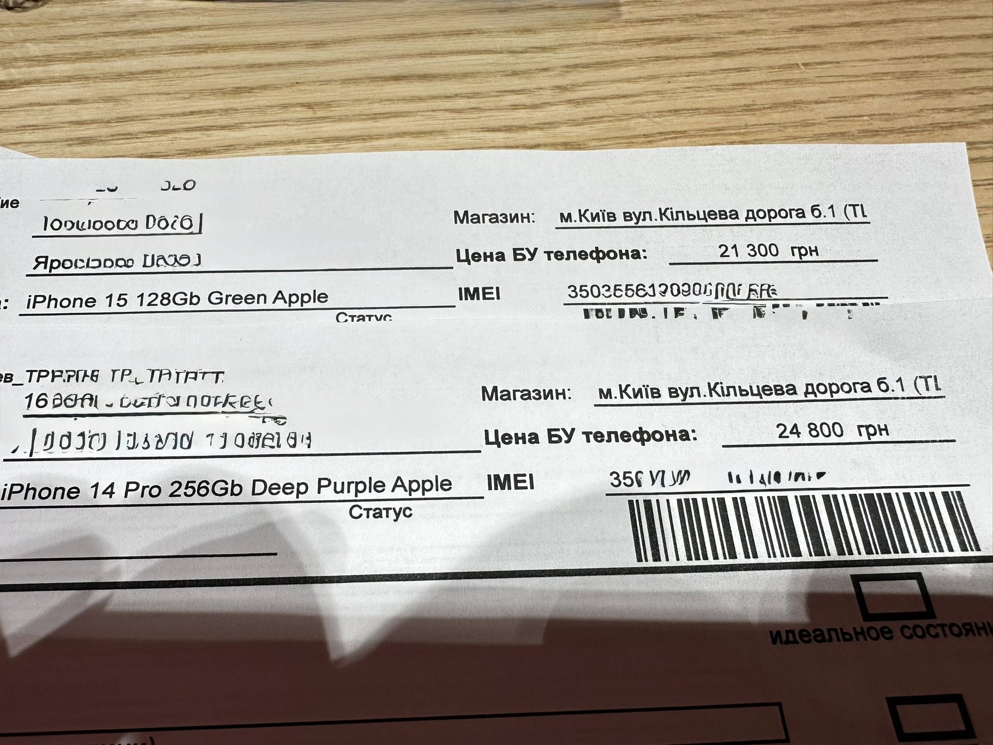 Шевченко для эксперимента взял iPhone 15 (128 ГБ) и iPhone 14 Pro (256 ГБ). Сначала он проанализировал, сколько денег можно получить на вторичном рынке, по типу платформ OLX: примерно 18 000 грн за iPhone 15 и 19 000 грн за 14 Pro. На стоимость влияет состояние аккумуляторов, но количество процентов на старых смартфонах он не уточнил.