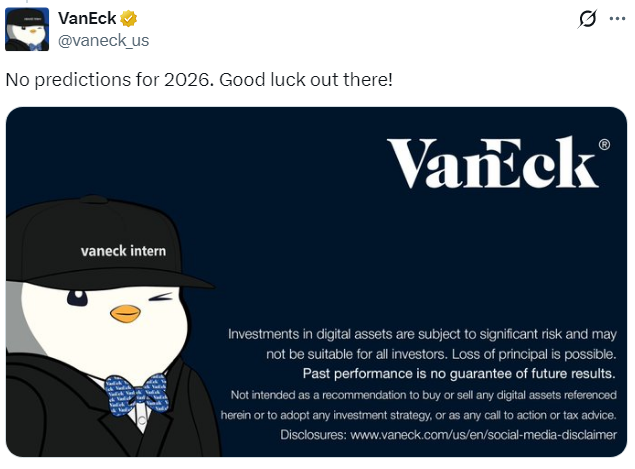 Впрочем, не все крупные игроки готовы делать даже условные прогнозы. Инвестфонд VanEck в этом году отказался от традиционного криптопрогноза на следующий год, ограничившись лаконичным: «удачи». Такой шаг подчеркивает, что даже на фоне снижения волатильности и роста институционального доверия не каждый игрок рынка, даже опытный, берется точно прогнозировать его.