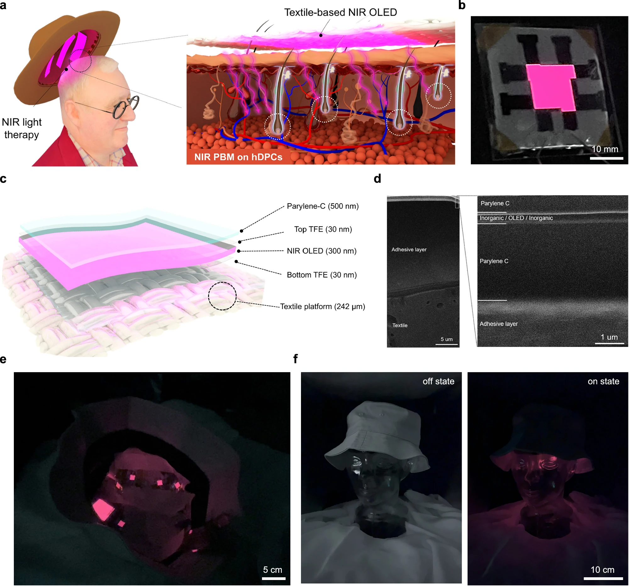 Корейские ученые разрабатывают OLED-шляпу для светотерапии по предотвращению выпадения волос и ускорению их роста.