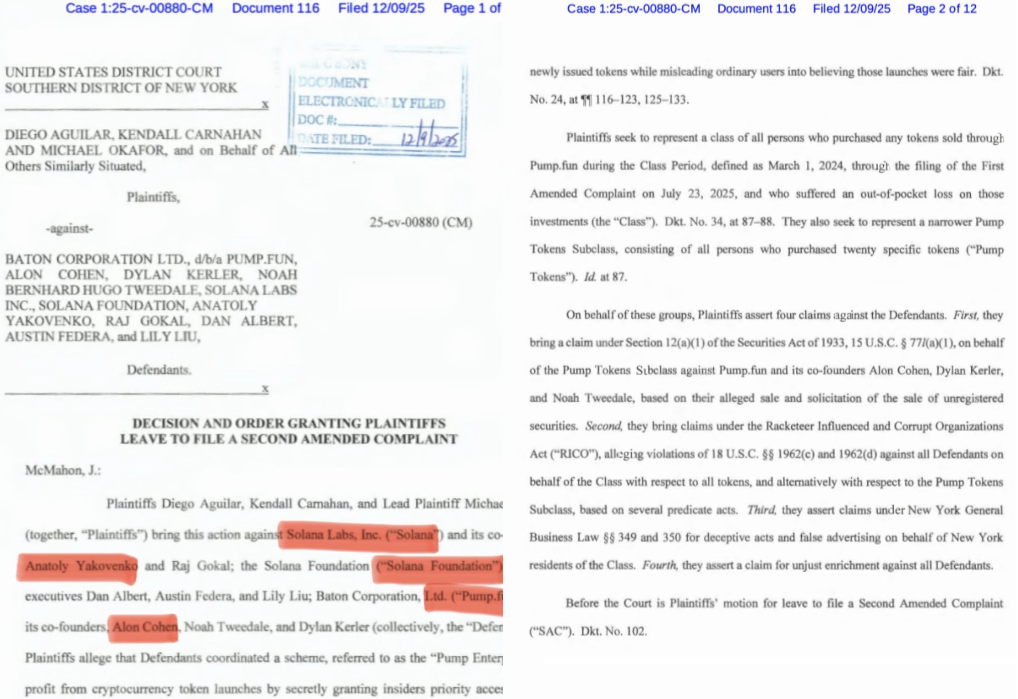 Толчком стала новость о том, что американский суд разрешил двигаться дальше второму иску пользователей, потерявших деньги во время торговли мемкоинами, запущенными через PumpFun. Истцы утверждают, что во время запусков токенов существовала неравная инсайдерская игра: отдельные участники якобы имели доступ к покупке раньше других, выполняли транзакции быстрее и по более выгодной цене, тогда как розничные инвесторы заходили позже и оставались с убытками после резких обвалов.