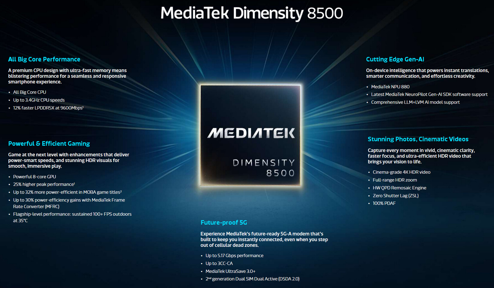 Среди возможностей Dimensity 8500: