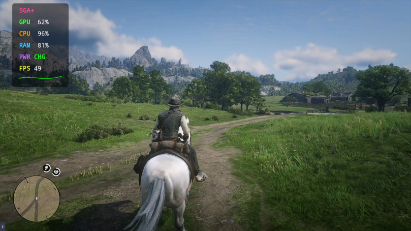 - Red Dead Redemption 2 — в среднем более 40 FPS, в помещениях до 60 FPS (высокие текстуры, остальные настройки низкие)