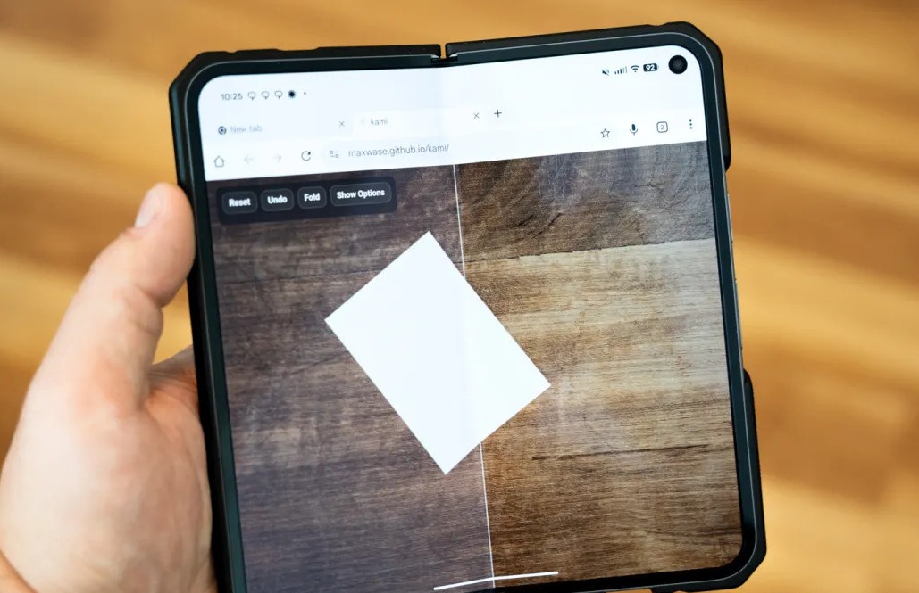 Одна из них — симулятор оригами под названием Kami, работающий именно так, как только и можно это себе представить. Пользователь Reddit недавно опубликовал ее как собственную игру сугубо для раскладушек. Игра использует шарнир сгибания-разгибания экрана для складывания бумаги и является довольно сложной. Расположение бумаги по линии определяет место сгиба. При простом физическом складывании дисплея Galaxy Z Fold 7, Pixel 10 Pro Fold или другой аналогичной модели бумага складывается вдоль линии. Автор сделал свой проект доступным онлайн, чтобы любой мог модифицировать игру по собственному усмотрению. Желающие поиграть могут просто перейти на сайт Kami, поскольку это веб-игра.