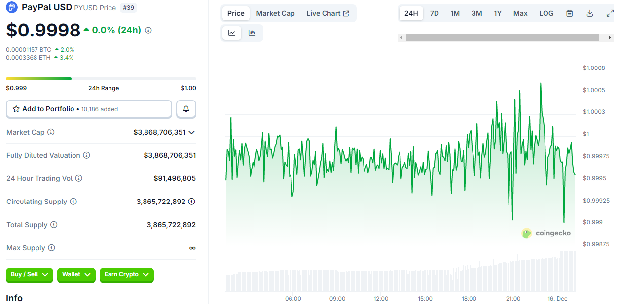 PayPal уже давно является одним из первых крупных технологических игроков, которые заходили в крипто. В 2020 году компания позволила пользователям покупать и продавать Bitcoin, Ethereum и еще несколько криптовалют. А в 2023 году она запустила стейблкоин PYUSD, рыночная капитализация которого сейчас составляет, по данным CoinGecko, почти $4 млрд.