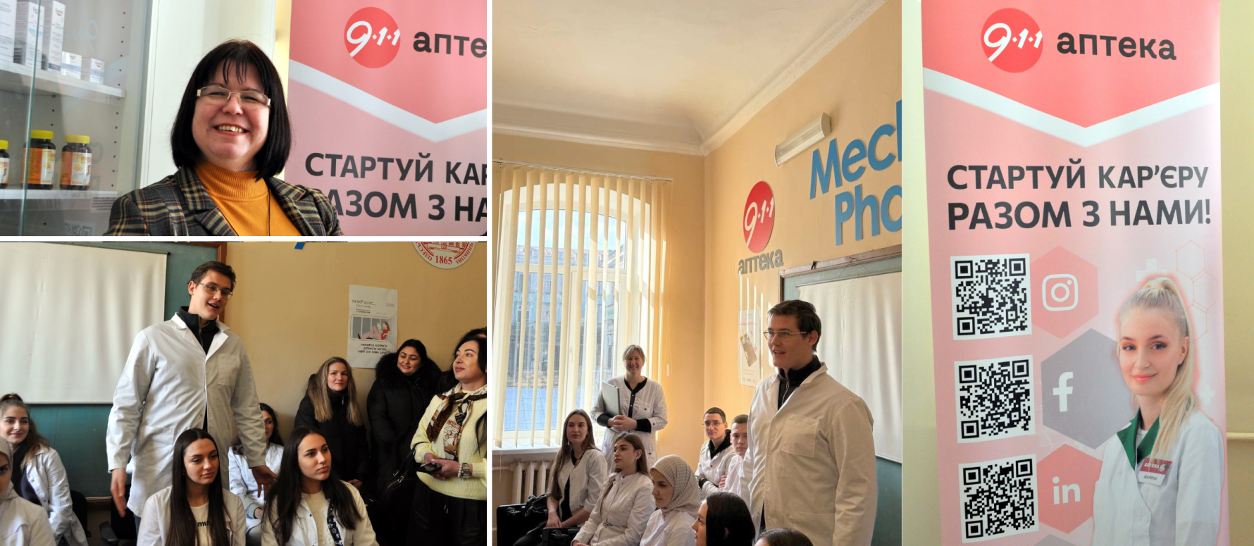 Під час події представники «Аптеки 9-1-1» вручили сертифікати на додаткову стипендію трьом найкращим студентам-фармацевтам, а також провели презентацію та пізнавальну вікторину.
