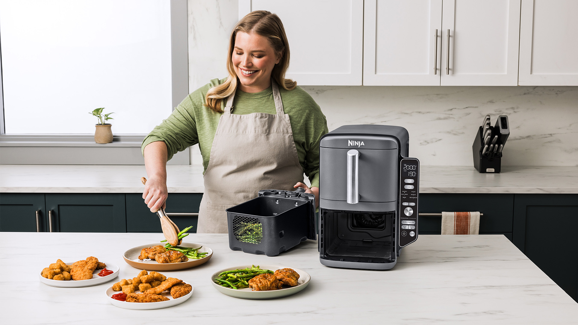 Справжня знахідка для тих, хто хоче готувати багато, але має обмежений простір на кухні: унікальний вертикальний дизайн печі економить місце на стільниці, пропонуючи два незалежні кошики. Ви зможете швидко нагодувати велику компанію здоровою їжею з хрусткою скоринкою, не вмикаючи звичайну духовку та не чекаючи її розігріву.