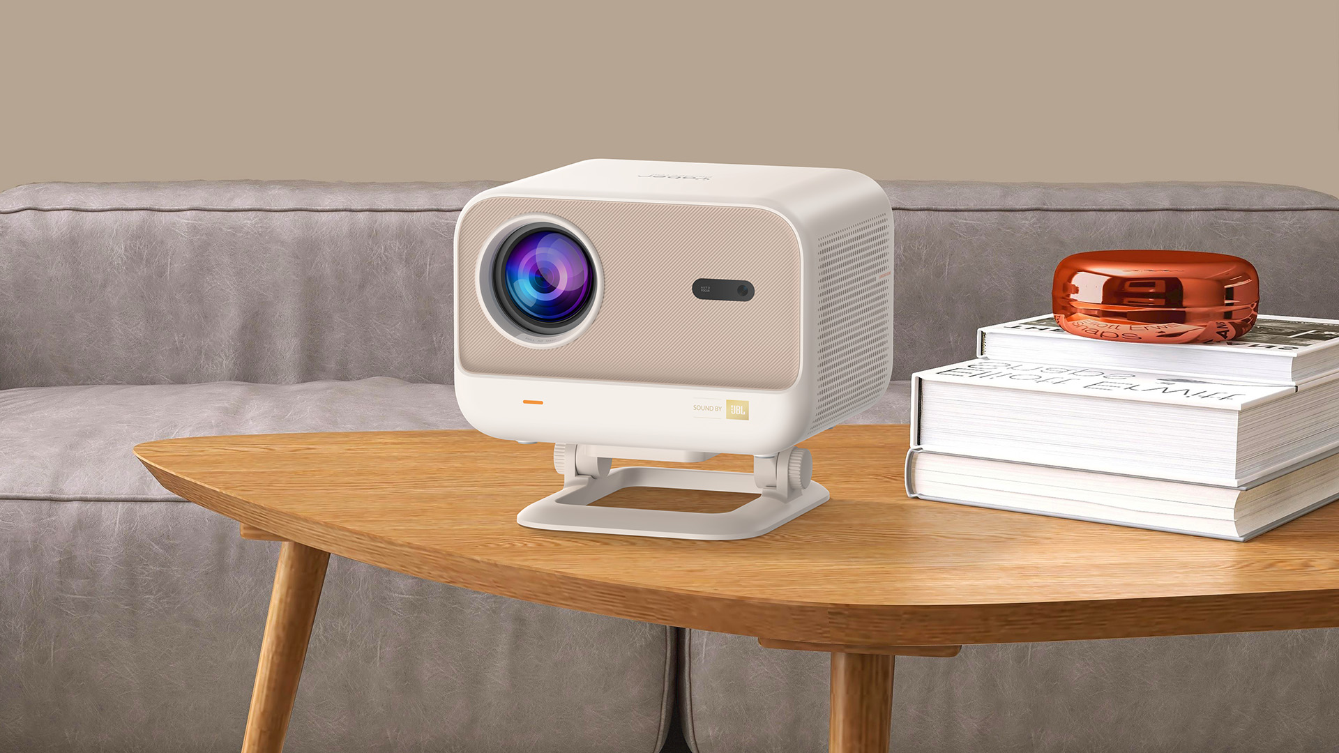 Завдяки вбудованому акумулятору та зручній ручці-підставці ви отримуєте повну свободу переміщення, а автоматичне налаштування зображення миттєво адаптує картинку під будь-яку поверхню. Додатково виробник вбудував тут акустику від JBL, що дає потужний та чистий звук. Тож вам не доведеться носити з собою зайві колонки для організації повноцінного кінотеатру.