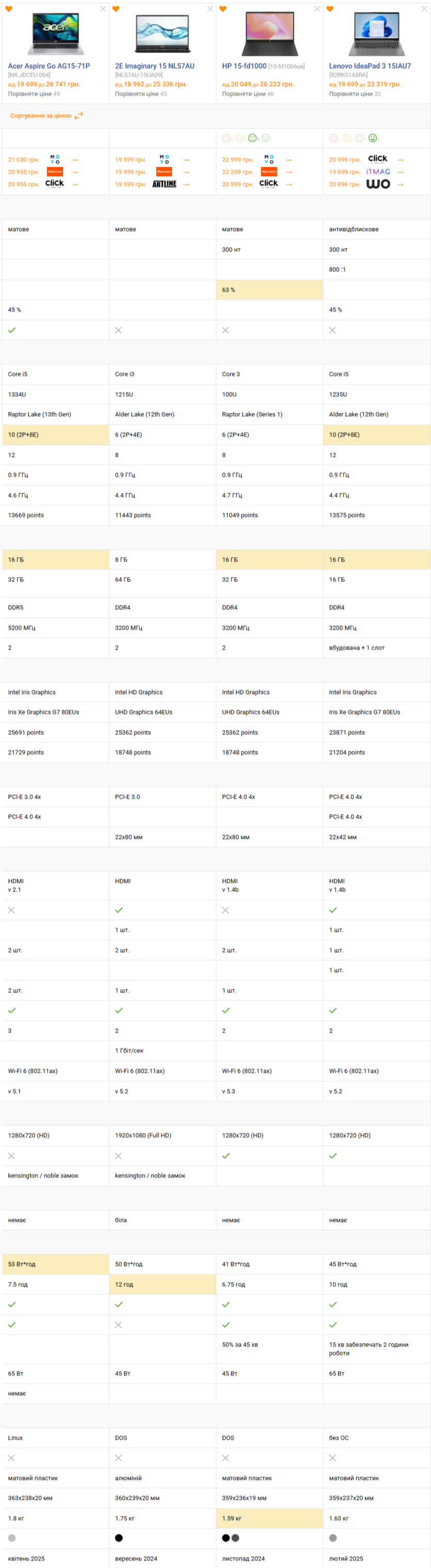 - 11 Ціна та конкуренти Acer Aspire Go 15 AG15-71P