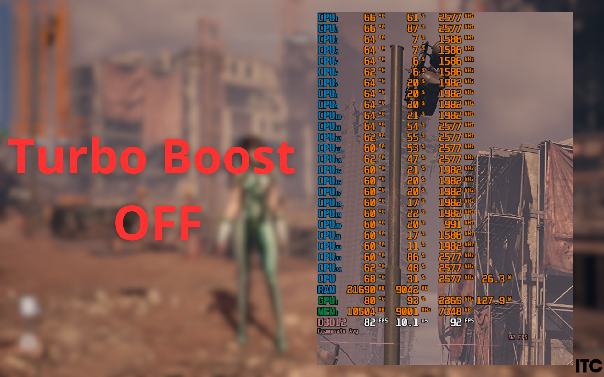Візуально гра виглядає відмінно, але саме тут помітне теплове навантаження на процесор. Його температура періодично підскакує до пікових значень, хоча загальна плавність кадрів залишається стабільною. Якщо вимкнути турбо-буст процесора, падіння FPS буде мінімальним (буквально 1-3 к/с), а температури помітно знизяться, що робить роботу системи більш спокійною.