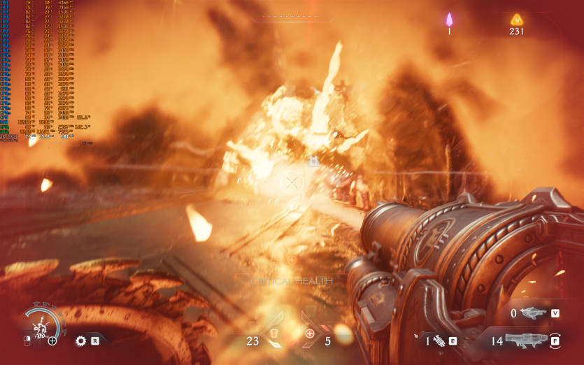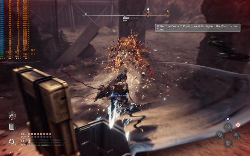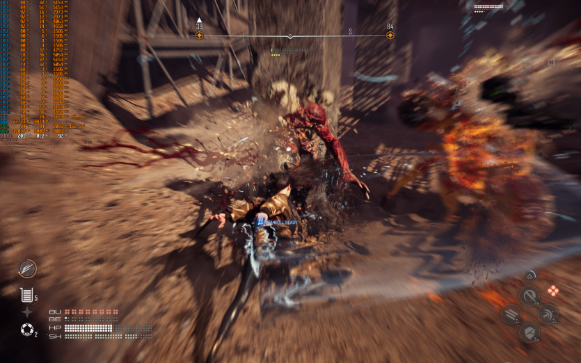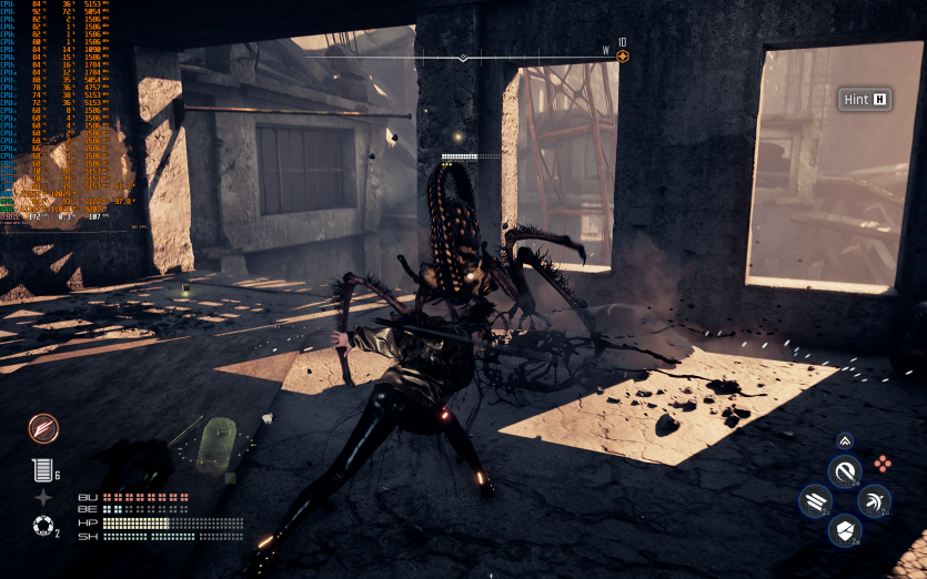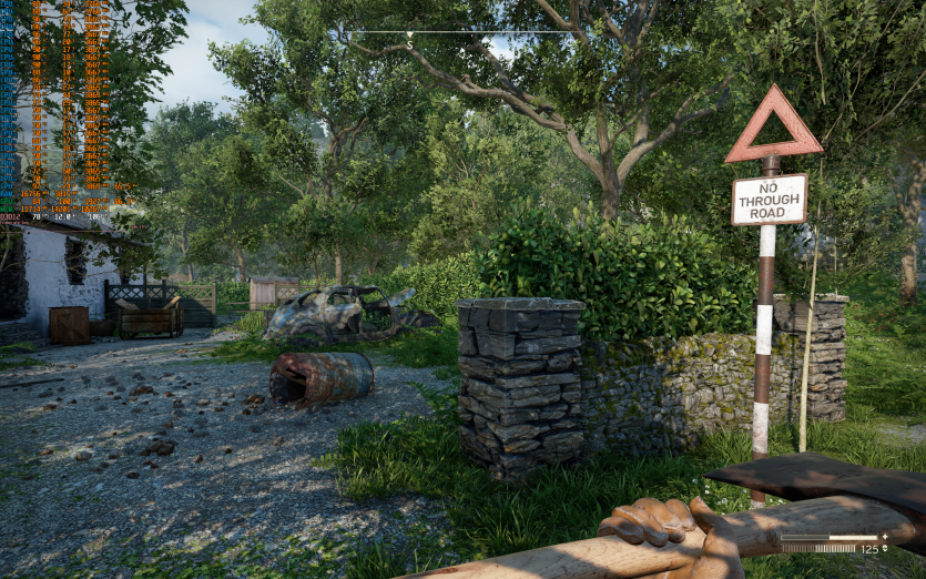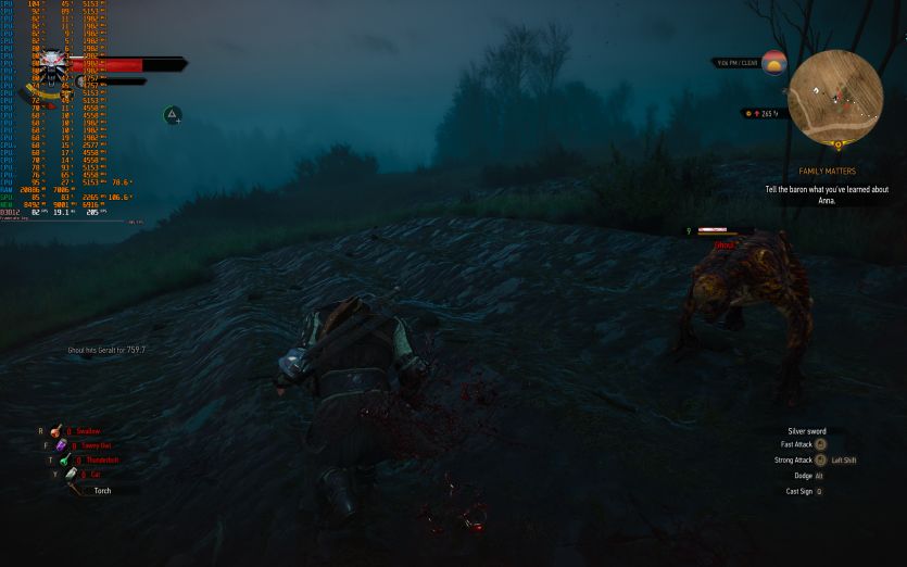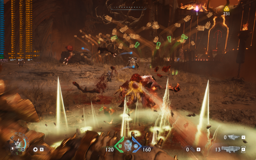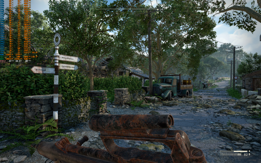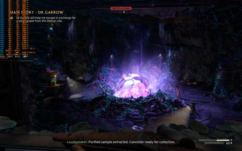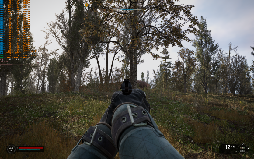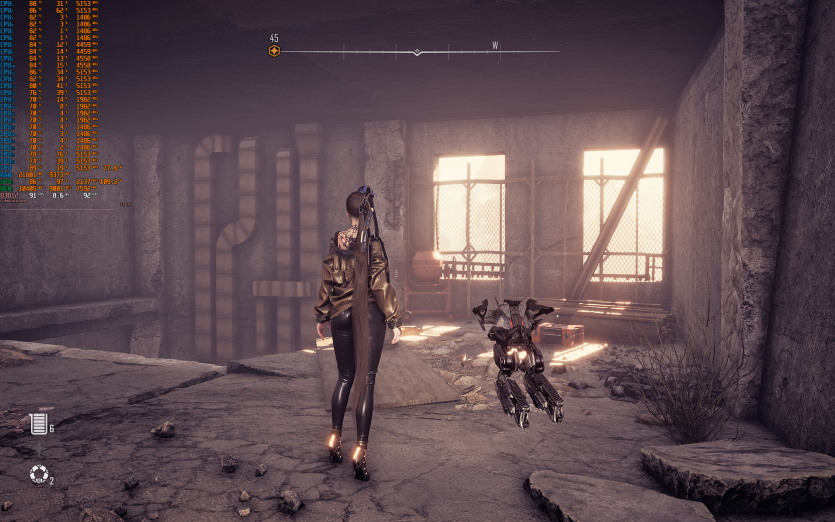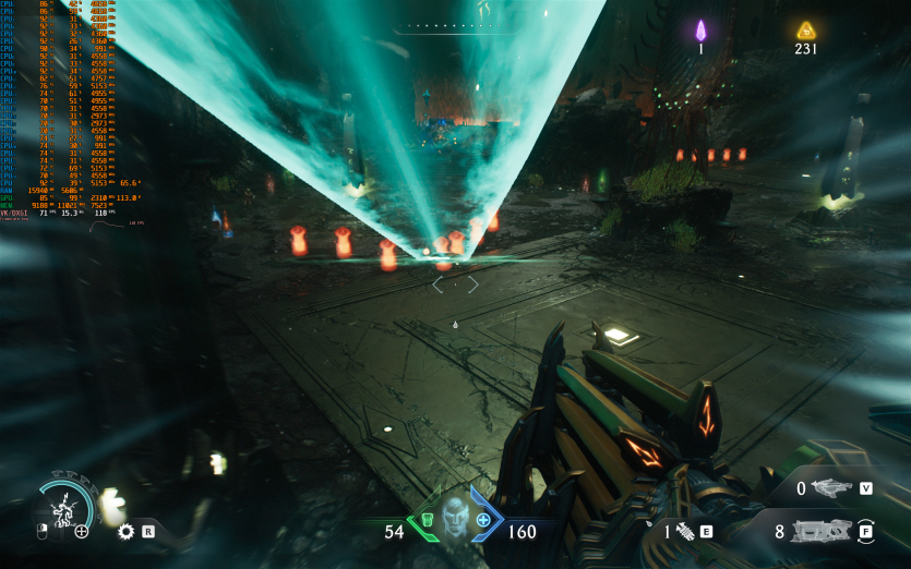 Atomfall у режимі Ultra з MSAA 8X без FG тримає 128 FPS. Навантаження рівномірно розподіляється між процесором і відеокартою, але температура GPU стабільно залишається в зоні 84–86 °C, що вже близько до верхньої межі комфорту.