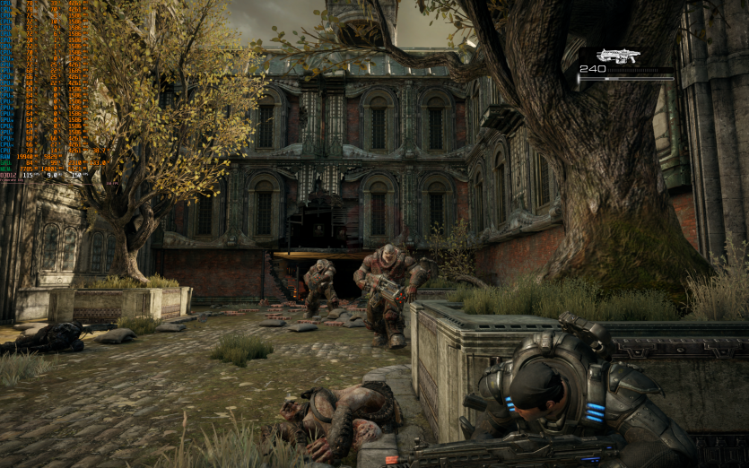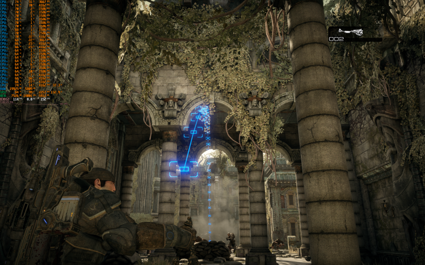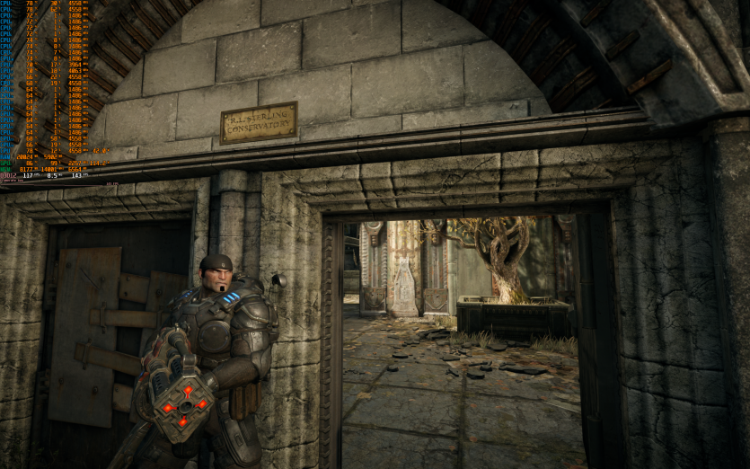 Gears of War: Reloaded з Ultra-налаштуваннями з DLAA і без Frame Generation працює дуже стабільно, видаючи в середньому 141 FPS.