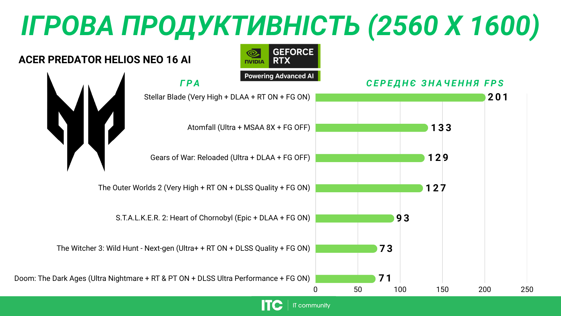 Ігрова продуктивність Acer Predator Helios Neo 16 AI