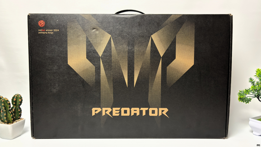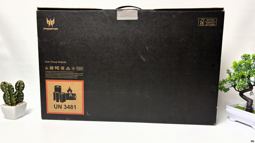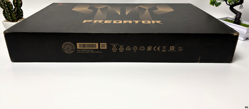 Acer Predator Helios Neo 16 AI постачається у великій чорній коробці з жорсткого картону з фірмовим “хижацьким” логотипом. Дизайн паковання мінімальний і виконує суто утилітарну функцію: ідентифікацію серії та захист під час транспортування.