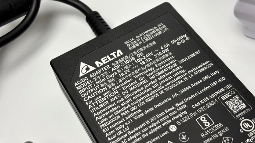 Блок живлення потужністю 330 Вт великий і важкий, що прямо впливає на мобільність комплекту. Його габарити та маса ускладнюють щоденне перенесення ноутбука, особливо з урахуванням загальної ваги 16-дюймового корпусу у 2.5 кг.