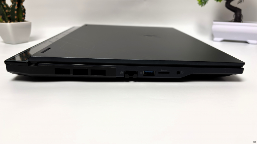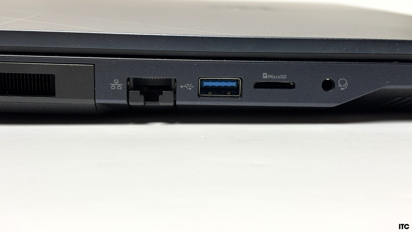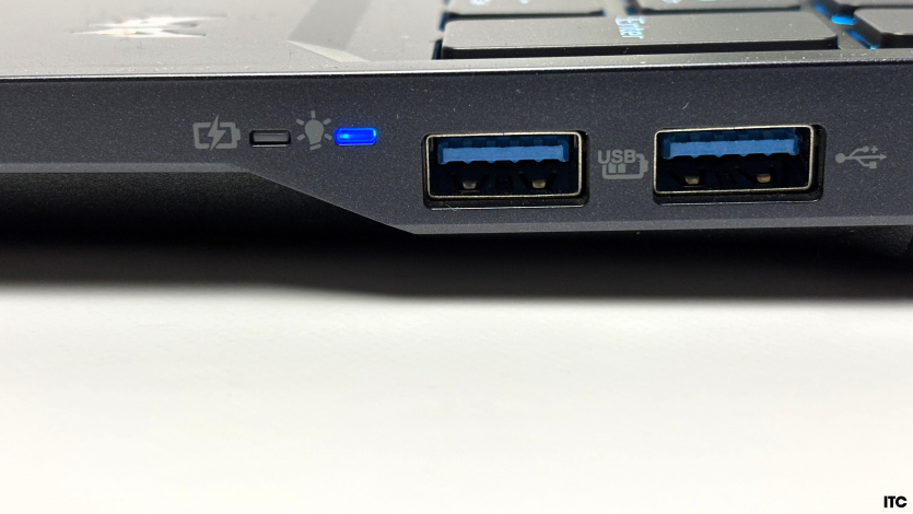 Ергономіка портів Acer Predator Helios Neo 16 AI виглядає продумано. На лівій грані: мережевий порт із підтримкою 2,5 Гбіт/с, один USB-A 3.2 Gen1, слот microSD (не частий гість, треба сказати), а також комбінований 3,5-мм аудіороз’єм для гарнітури. Праворуч розміщено два USB-A 3.2 Gen2, які зручно використовувати, наприклад, для зовнішніх накопичувачів. Основні ж високошвидкісні інтерфейси винесені на задню панель: HDMI-вихід, роз’єм підключення блоку живлення, а також Thunderbolt 4 і USB-C 3.2 Gen2.