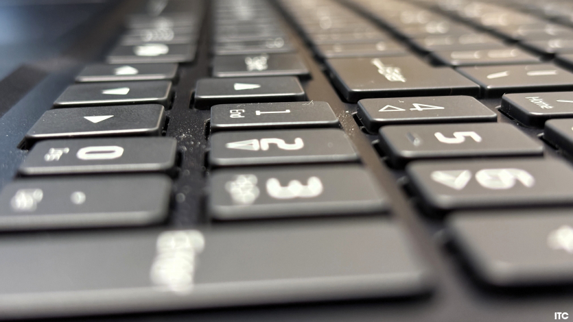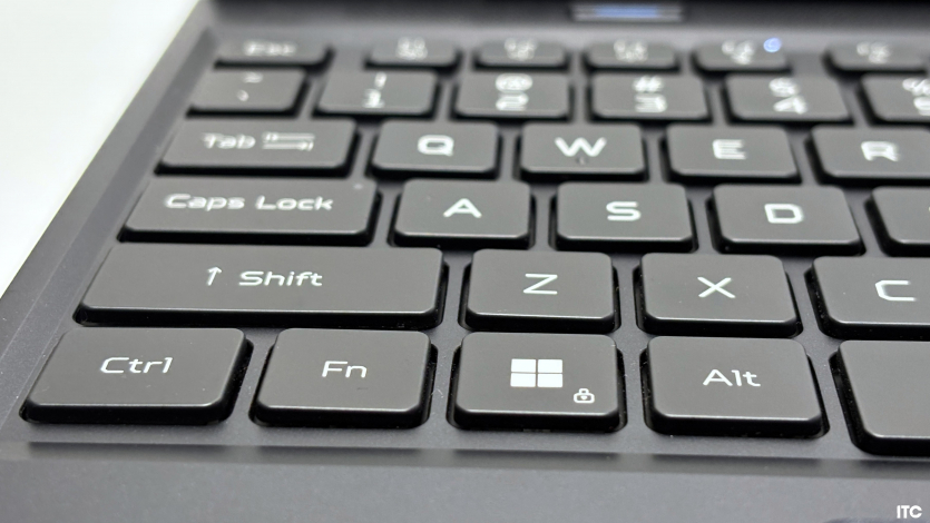 Робоча поверхня тачпада становить приблизно 125 × 85 мм, чого достатньо для жестів Windows Precision і базової навігації. Поверхня гладка, палець ковзає без ривків, жести розпізнаються коректно. Фізичних кнопок немає. Клацання реалізоване через саму панель. Для ігор та точних дій тачпад залишається допоміжним інструментом, бо у таких сценаріях миша must-have.
