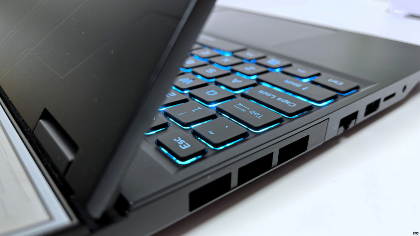 Підсвітка клавіатури 4-рівнева RGB, керується через PredatorSense і дозволяє налаштовувати яскравість та ефекти, але без індивідуального RGB для кожної клавіші. У повсякденній роботі підсвітка корисна штука.