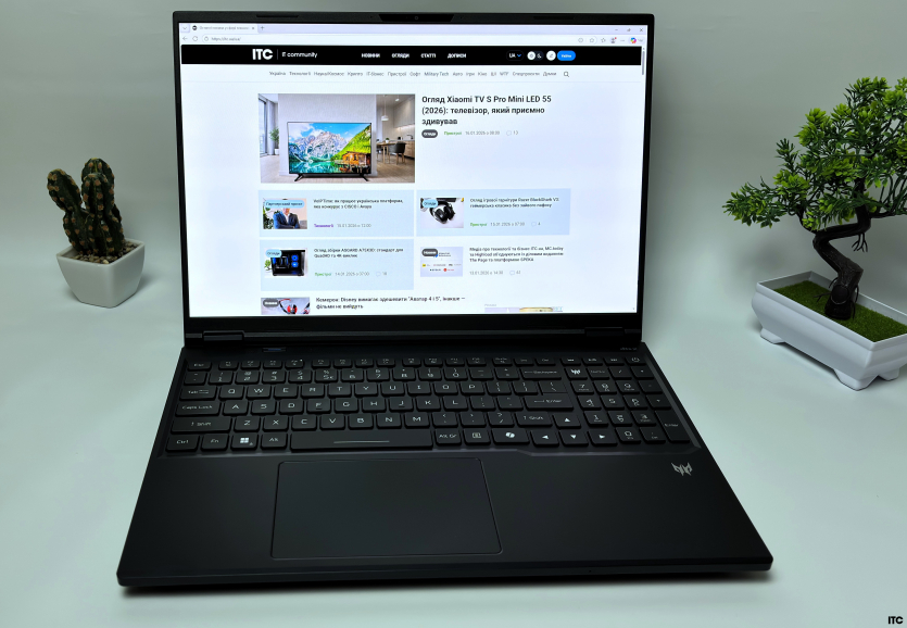 Загалом дизайн і конструкція Acer Predator Helios Neo 16 AI не пропонують нічого поза рамками очікувань. Це функціональний корпус, зібраний без явних прорахунків, але й без інженерних рішень, які б вирізняли модель серед численних конкурентів у сегменті.