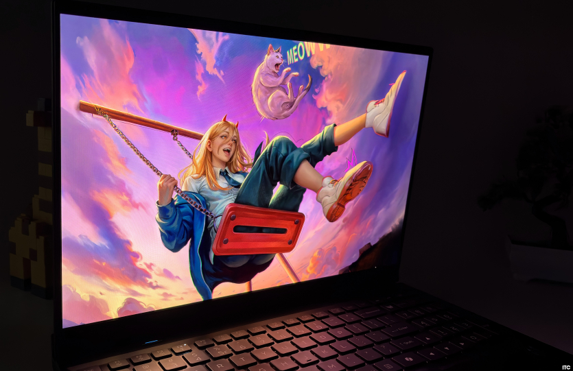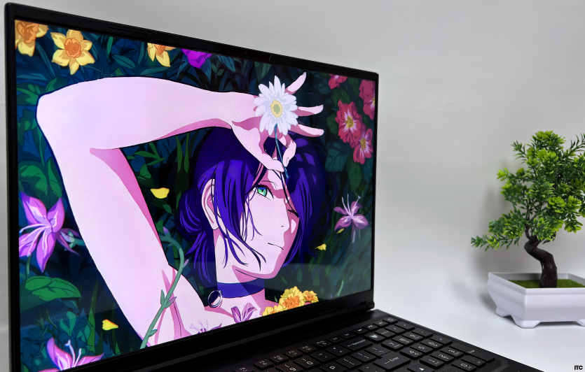 Контрастність OLED фактично безмежна, що напряму впливає на глибину чорного кольору. У темних сценах різниця з IPS-панелями разюча. Колірне охоплення у 100% DCI-P3, що робить дисплей придатним для роботи з кольором.