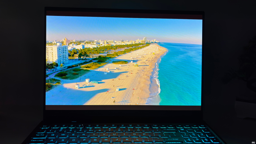 Дисплей OLED із частотою 240 Гц відчувається приємно у динамічних іграх та при перегляді відео, але глянцева поверхня швидко видає відблиски, якщо за вікном сонце. Для тих, хто звик до матових панелей у ноутбуках, це може не сподобатись.