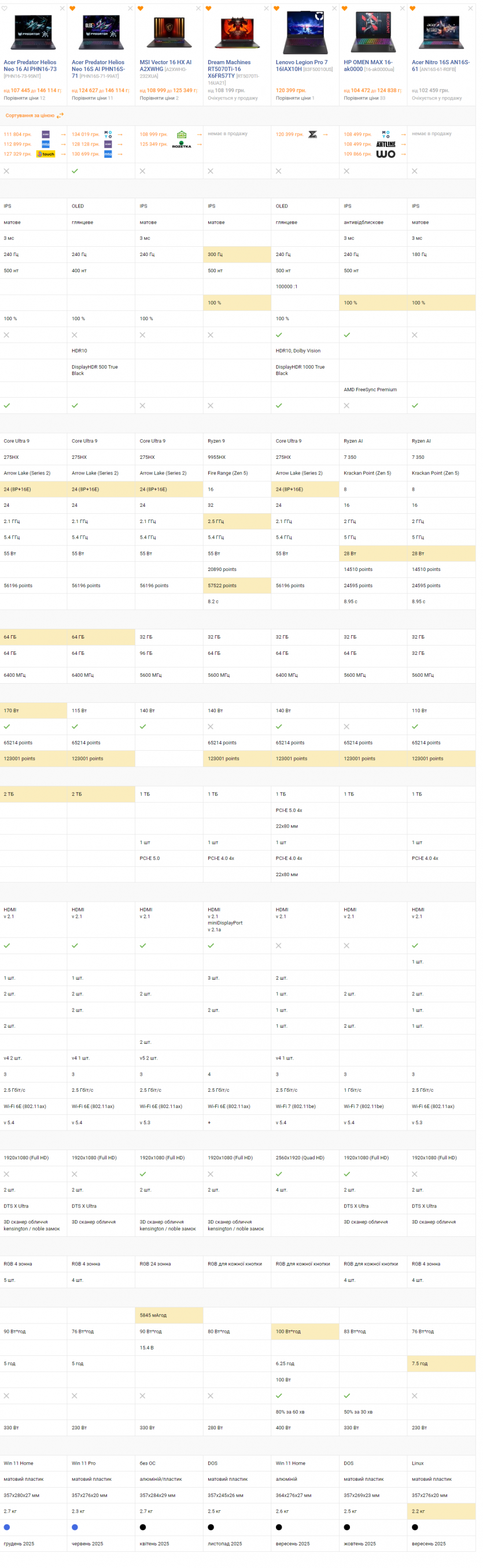 Для порівняння у тому ж сегменті присутні серйозні конкуренти: MSI Vector 16 HX AI (108 999–125 349 гривень), Dream Machines RT5070Ti (від 108 199 гривень), Lenovo Legion Pro 7 (від 120 399 гривень), HP Omen Max 16 (104 472–124 838 гривень) та Acer Nitro 16S (від 102 459 гривень).