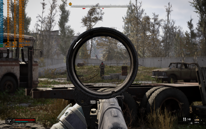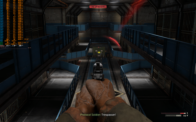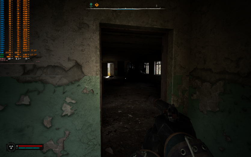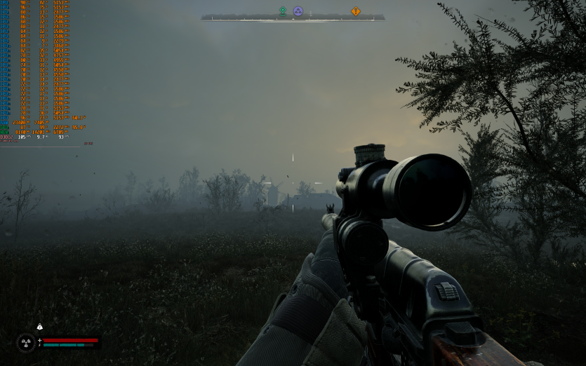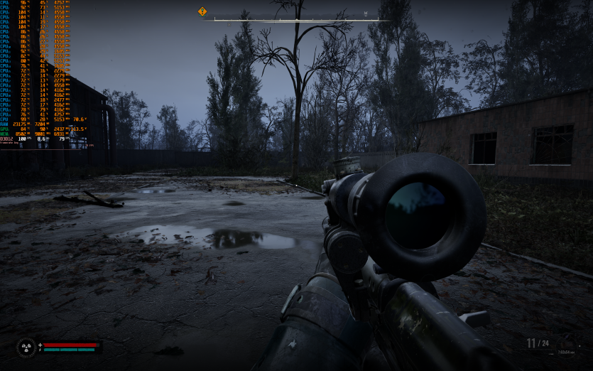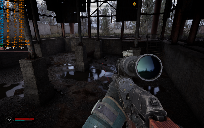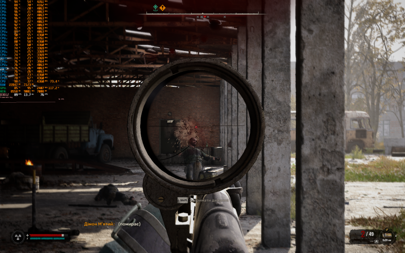 S.T.A.L.K.E.R. 2: Heart of Chornobyl на пресеті Epic з DLAA та з увімкненою генерацією кадрів показує 93 FPS. Саме в цій грі найчастіше фіксуються піки температур CPU до 104–105 °C, що не критично в коротких відрізках, але явно не додає комфорту при тривалому геймплеї.