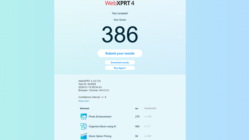 | WebXPRT 4 | 386 |