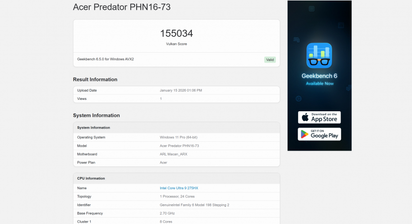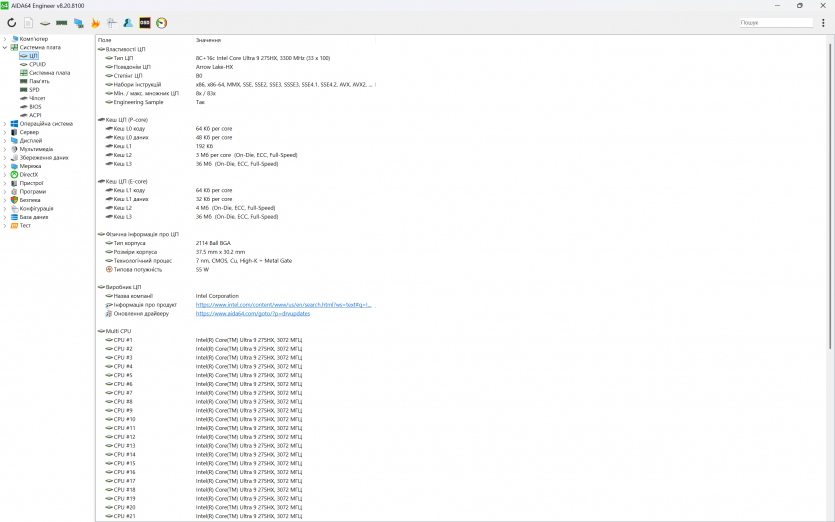 | Процесор | Intel Core Ultra 9 275HX (24 ядра: 8 P-ядра + 16 E-ядра), до 5.4 ГГц. |