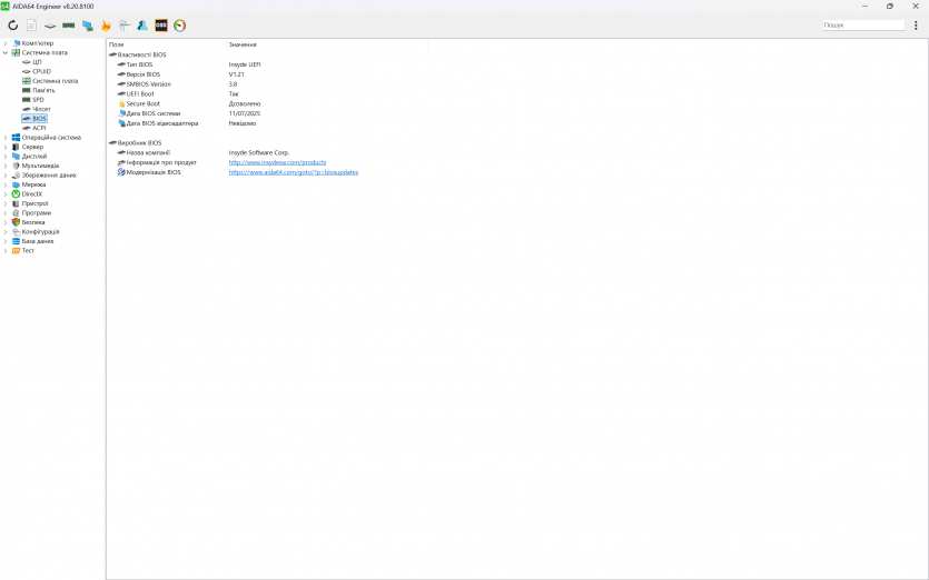 Фірмове програмне забезпечення Acer Predator Helios Neo 16 AI
