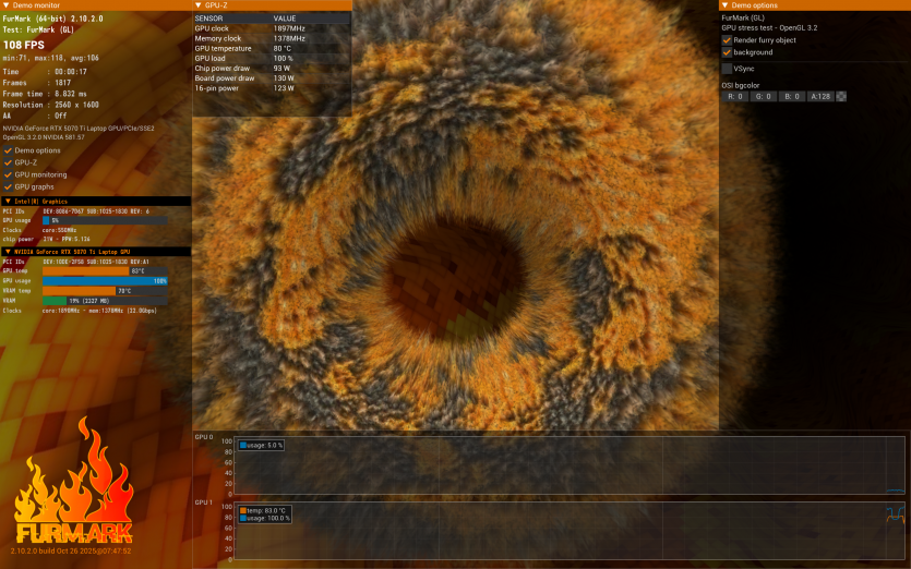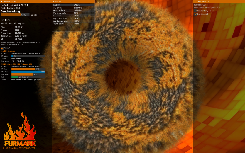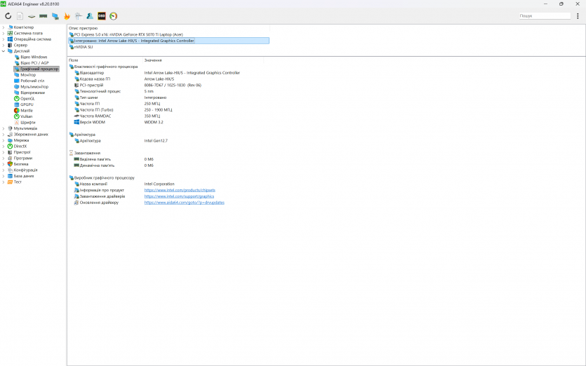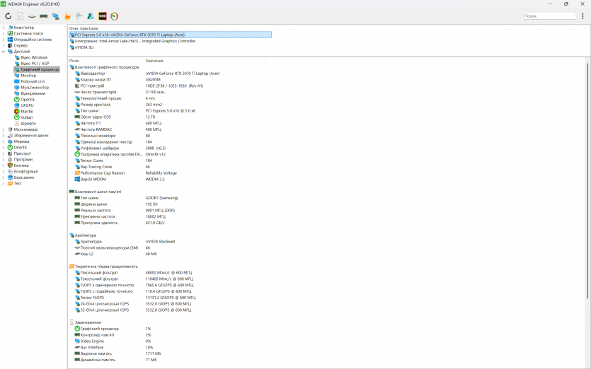 | Відеокарта | NVIDIA GeForce RTX 5070 Ti Laptop GPU, 12 ГБ GDDR7, Boost Clock до 2520 МГц, TGP 140 Вт (із Dynamic Boost) |