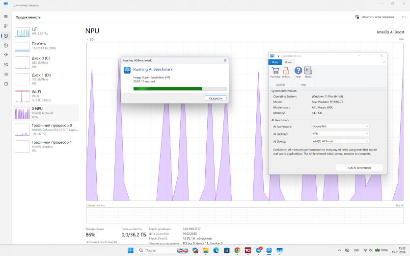 Робоча продуктивність Acer Predator Helios Neo 16 AI